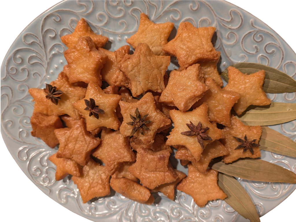 Equipment: Deep pan/wok, slotted spoon, rolling pin, star cutter, paper towels (optional: thermometer)
